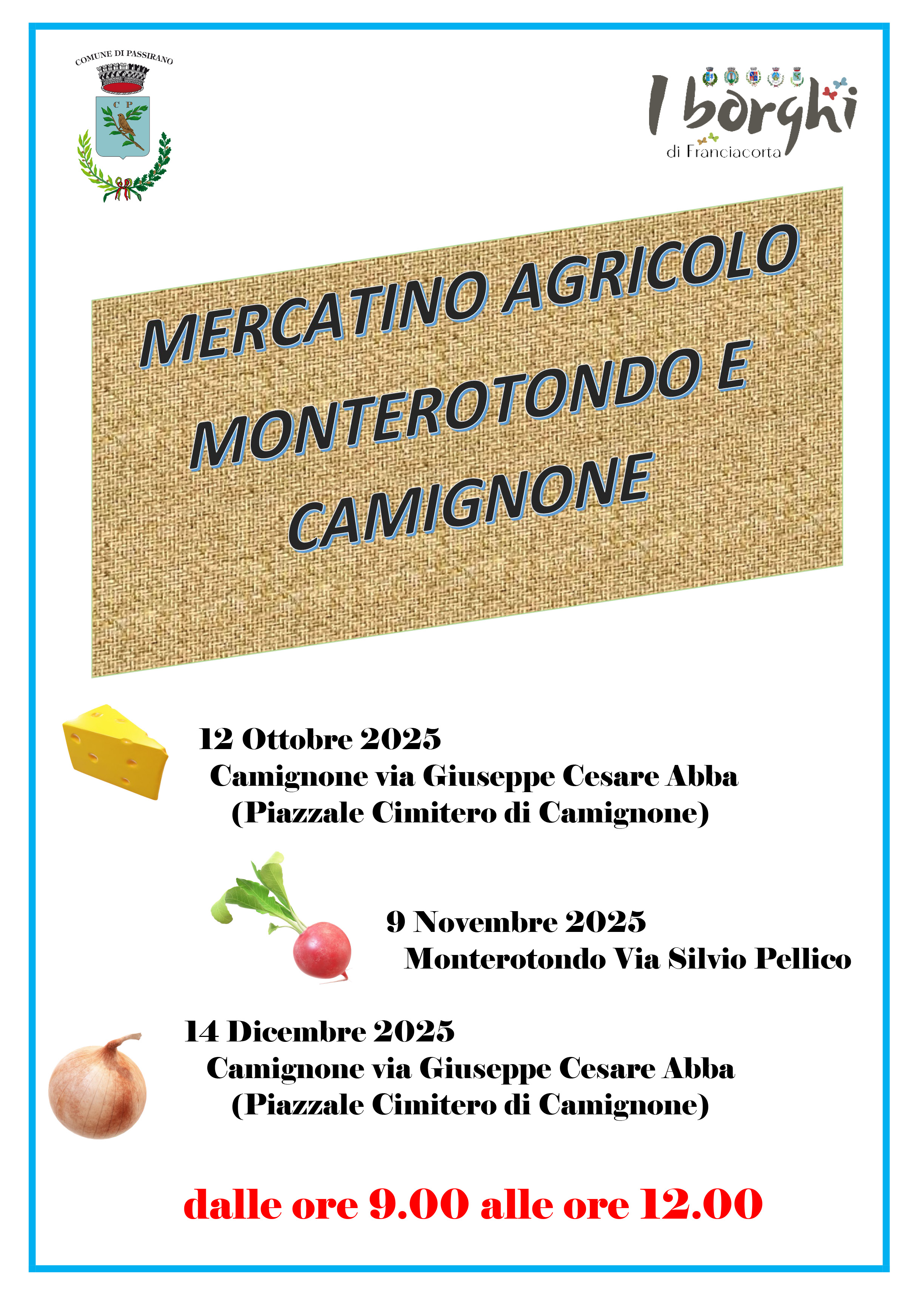 Locandina delle prossime date del Mercatino agricolo Monterotondo e Camignone