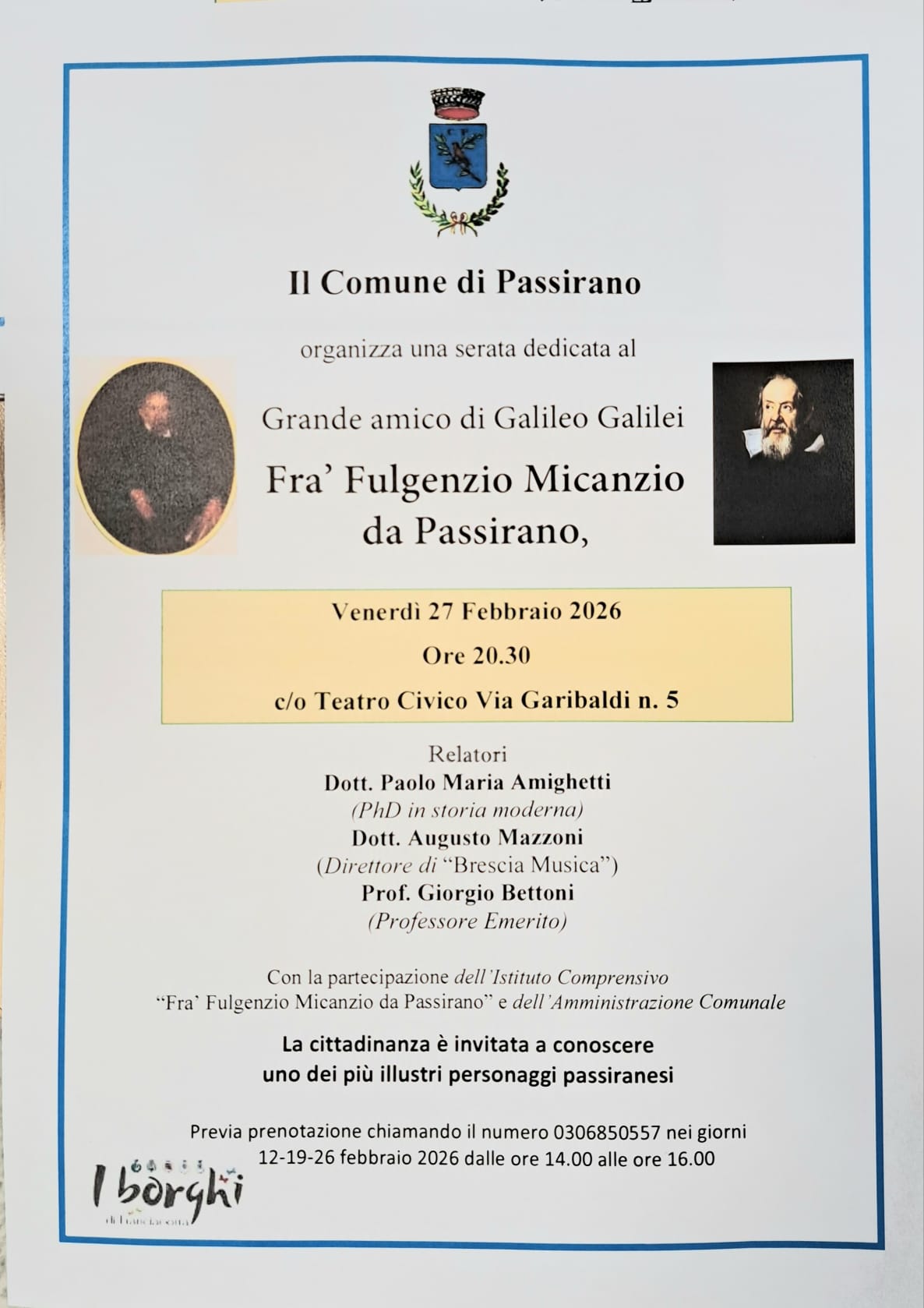 previa prenotazione al numero 0306850557 nei giorni 12-19-26 febbraio dalle 14:00 alle 16:00